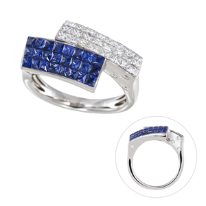 5043193:PT950/K18YG Dカラーダイヤ&ダイヤクロスラインリング D約0.30ct(D SI2 EX328,000円