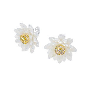 パラジウムシルバー950 ゴールデントパーズ 白蝶貝 フェザータッチイヤリング TO 約1.30ct