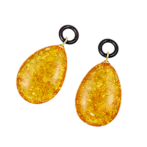 K18YG 琥珀(ミルキーアンバー) ペアシェイプ ピアス 縦 約27.0mm 横 約15.0mm