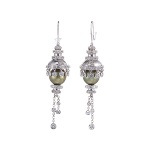 パラジウムシルバー950/SV 黒蝶真珠ピスタチオカラー(トリート) 天然ホワイトジルコン パレス ピアス P 約11.0mm ZI 約7.40ct