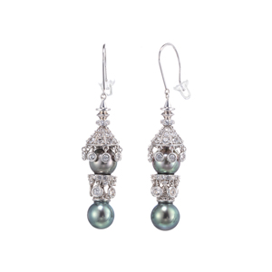 パラジウムシルバー950 黒蝶真珠 天然ホワイトジルコン パレス ピアス P 約8.0mm ZI 約3.20ct