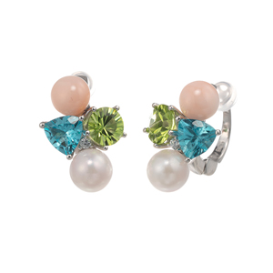 パラジウムシルバー950 モモサンゴ コンケーブカット ペリドット アパタイト アコヤ真珠 フェザータッチイヤリング COR 約1.60ct PE 約1.40ct APA 約1.20ct P 約6.5mm ZI 約0.06ct