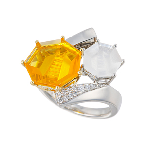 パラジウムシルバー950 地中海サンゴ 天然ホワイトジルコン Mano リング COR 約2.50ct ZI 約0.60ct