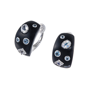 パラジウムシルバー950 レインボームーンストーン アクアマリン オニキス 夜空 フェザータッチイヤリング MO 約0.40ct AQ 約0.20ct