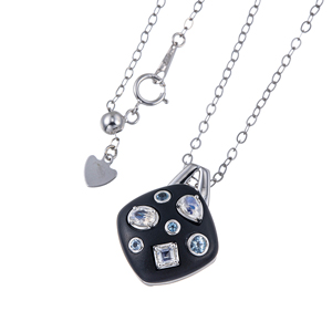 パラジウムシルバー950 レインボームーンストーン アクアマリン オニキス 夜空 ネックレス MO 約0.30ct AQ 約0.10ct