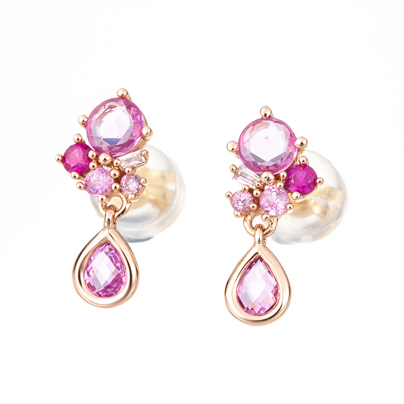 K18PG ピンクサファイア ルビー ダイヤ ピアス PS 約0.88ct RB 約0.12ct D 約0.02ct