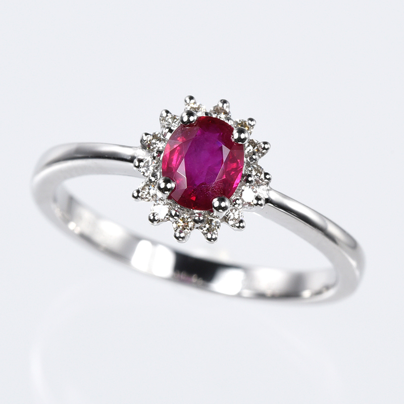 | ミャンマー産ルビーをダイヤモンドで取巻き、中石を引き立てる華やかなお仕立てのジュエリーです。 |