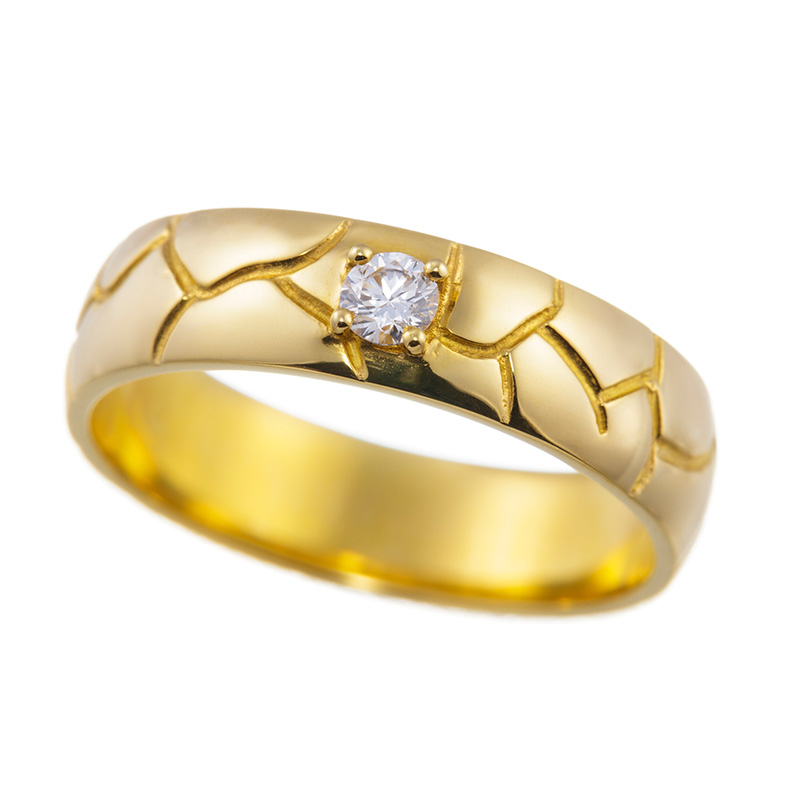 | 【2022年9月ガイド誌掲載商品】 AZUSAデザイン。爬虫類の皮膚や大地をイメージしてお作りしたクラック模様のアイテム。ユニセックスデザインなので男性にもおすすめです。純金ならではの色合いもお楽しみください。 同デザインの純 プラチナタイプ(商品ID:5011288)もございます。 |