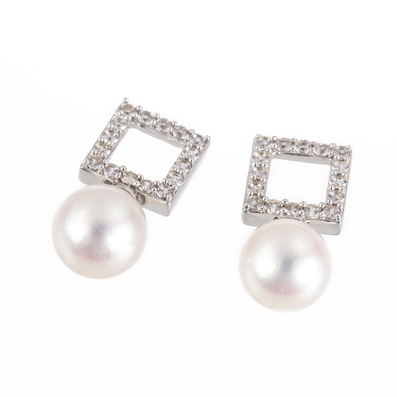 パラジウムシルバー950 アコヤ真珠 天然ホワイトジルコン チャーム P 約6.5mm ZI 約0.30ct