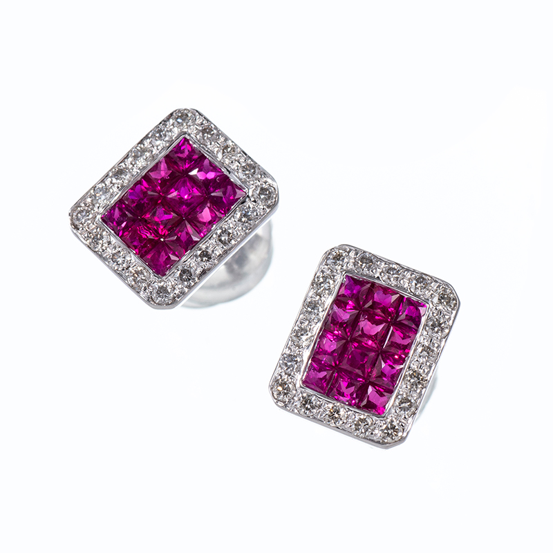 K18WG ルビー ダイヤ ミステリーセッティング ピアス RB 約0.86ct D 約0.24ct