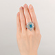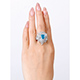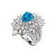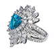 | トリリアントカットのパライバトルマリンに、変形シェイプのダイヤモンドで取り巻き、華やかさを最大限まで引き出したゴージャスなリングです。 |
