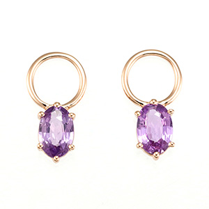 | パープルのお色味を耳元で楽しめる、シンプルデザインのアイテム。オーバルのサファイアを6本の爪でとめてデザイン性を持たせています。 (元品番:368794) |