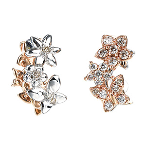 | 【2020年5月ガイド誌掲載】MARIコレクション 甘いお花の香りをほんのり感じるような、可憐な雰囲気のピアリング。温かみのあるブラウンダイヤモンドとピンクゴールドのデュエットで、お花の愛らしさを演出。リバーシブル仕様なので、その日の気分によってコーディネートをお楽しみください。 |