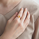 | 【2020年11月ガイド誌掲載商品】 ぷるんとしたカボションカットのシトリンをシンプルデザインでお仕立てした、モダンなリング。カジュアルにお楽しみください。 |