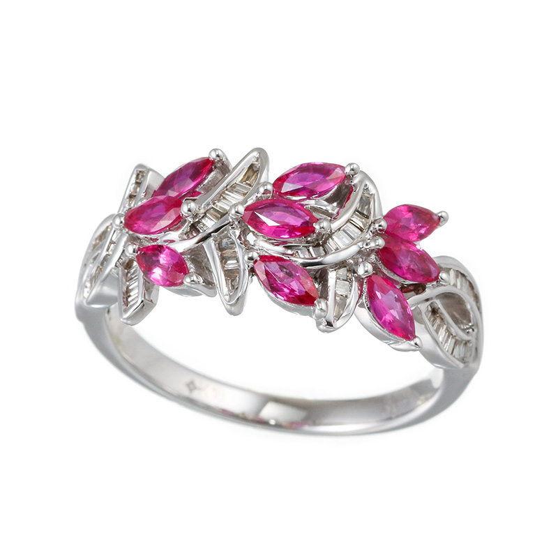 | 【2020年2月ガイド誌掲載】 花火をモチーフにしたジュエリー。飛び散る火の粉はルビーで見立て、流れる光はテーパーカットのブラウンダイヤで表現しました。 セットアップにおすすめ ペンダントトップ(商品ID:5018907) |