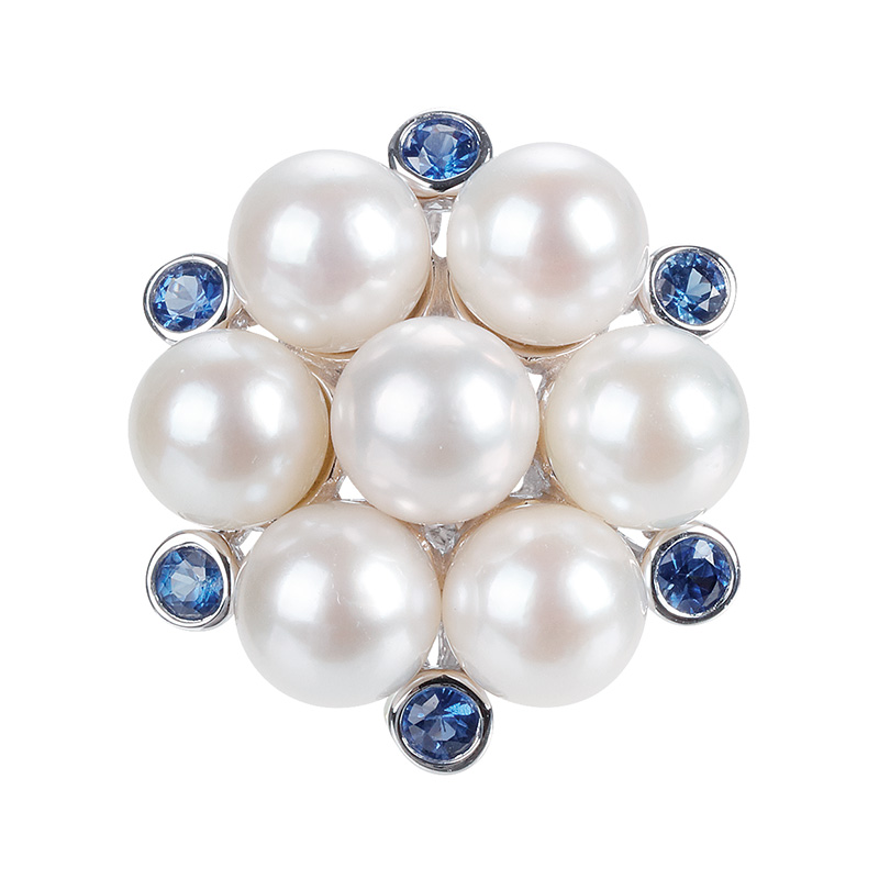K18WG アコヤ真珠 ブルーサファイア ペンダントトップ P 約4.5-5.0mm SA 約0.18ct
