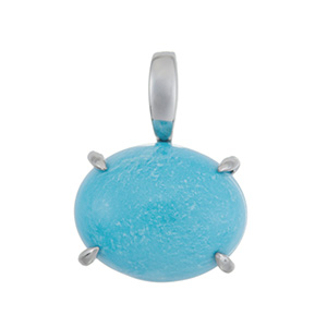 | オーバルカボションカットのスリーピングビューティーターコイズを横置きにし、シンプルなペンダントトップにお仕立てしました。重ね付けしたりして、コーディネートに差し色に。 |