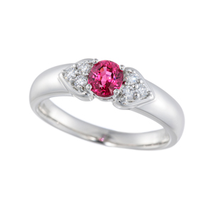 | MARIデザイン 1点もの。非加熱ルビーを主役に据えたリングです。存在感あふれるルビーの赤色が存在感を放ち、周囲を取り巻くダイヤモンドが気品ある輝きを添えています。クラシカルなミル打ちが施され、重厚感と華やかさを兼ね備えたデザインで、手元を格調高く彩ります。 |