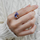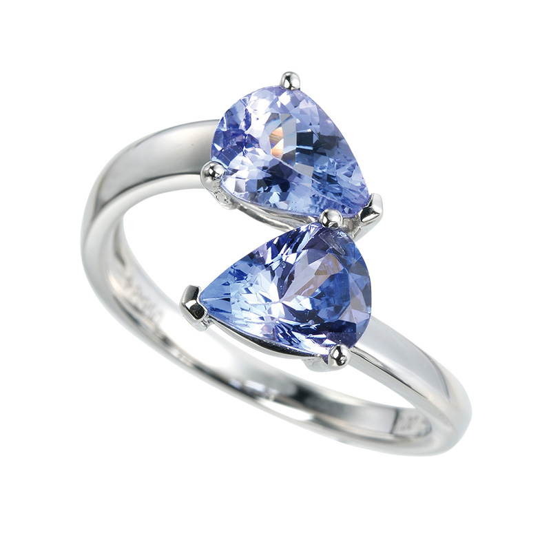 | 【2021年12月ガイド誌掲載】 タンザナイトを2粒使用したハグリング。タンザナイトのお色味を存分に楽しみながらも、1本で決まるシンプルすぎないデザイン。地金をしっかりと使用し、カーブに沿って立体感を付けたアームの部分もこだわりのポイントです。 |