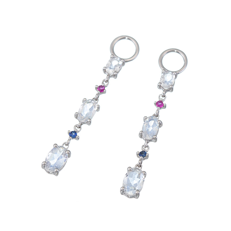 | AZUSAデザイン レインボームーンストーンをメインに、2色のサファイアをプラスした、Iラインのチャーム。トラベルジュエリーとしても◎ ![]() |