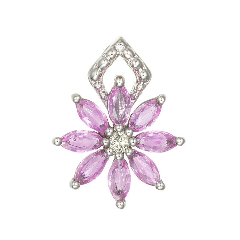 | 可憐な花の「ピンクコーンフラワー(ヤグルマギク)」をモチーフに、ペンダントトップをお作りしました。 ヤグルマギクはヨーロッパで特に親しまれているお花。花の色はピンク以外にも青や紫、赤、白など。ジュエリーにおいて、ブルーサファイアの最高級の色味の表現である「コーンフラワー」で馴染みがある名前です。花言葉は「繊細」「優美」。 |