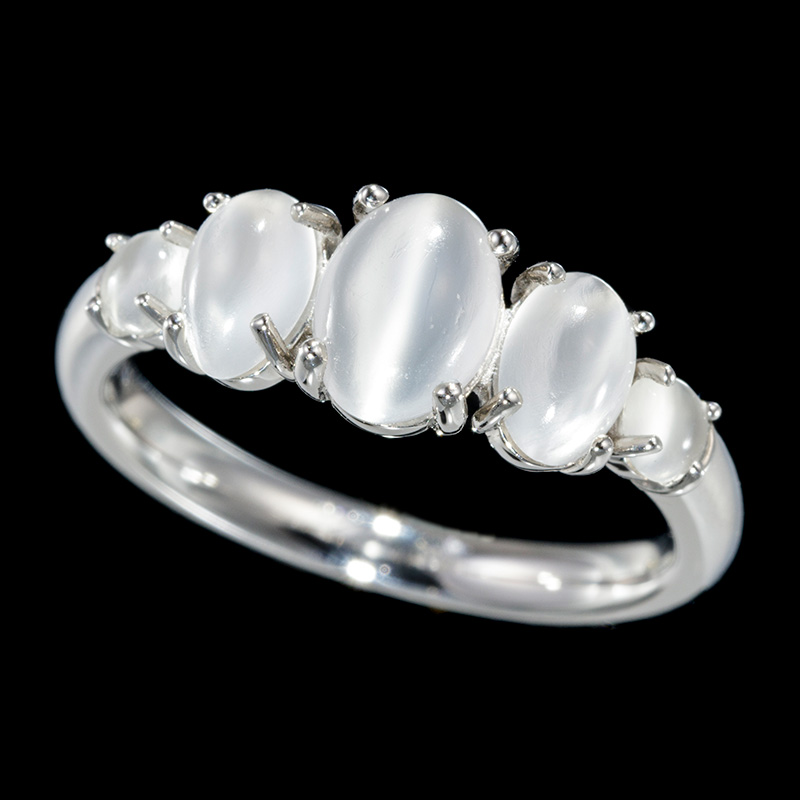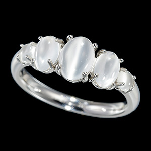 | 神秘的で上品なムーンストーンにキャッツがしっかりと入り、より神秘的な雰囲気を醸し出しております。シンプルなお作りで男性にもオススメのジュエリーです。 |