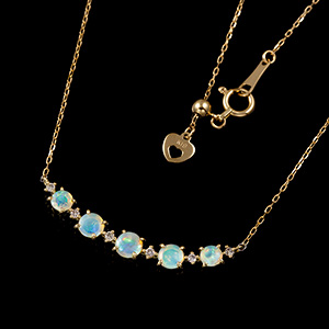 | まろやかなお色味が程よく肌になじむ、ホワイトオパールの横長バータイプのネックレス。遊色効果の美しいオパールに、ブラウンダイヤモンドの煌めきを添えて華やかに。地球からの美しい贈り物です。 |