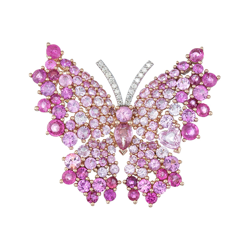 PT950/K18PG ピンクサファイア ダイヤ フェアリーバタフライ ペンダントブローチ PS 約9.00ct D 約0.10ct