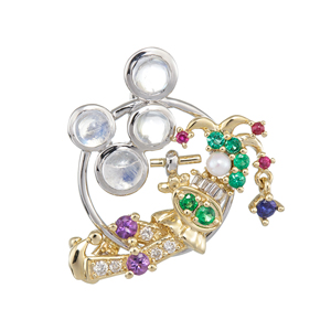 | 【2021年4月ガイド誌掲載】MARIデザイン「ピエロコレクション」 様々なカラーストーンを使い、モチーフと色のミックスをお楽しみいただけるピエロコレクション。シャボン玉を作りながら空中芸を見せるピエロがとても楽しげ。遊び心ある贅沢な作品です。 |