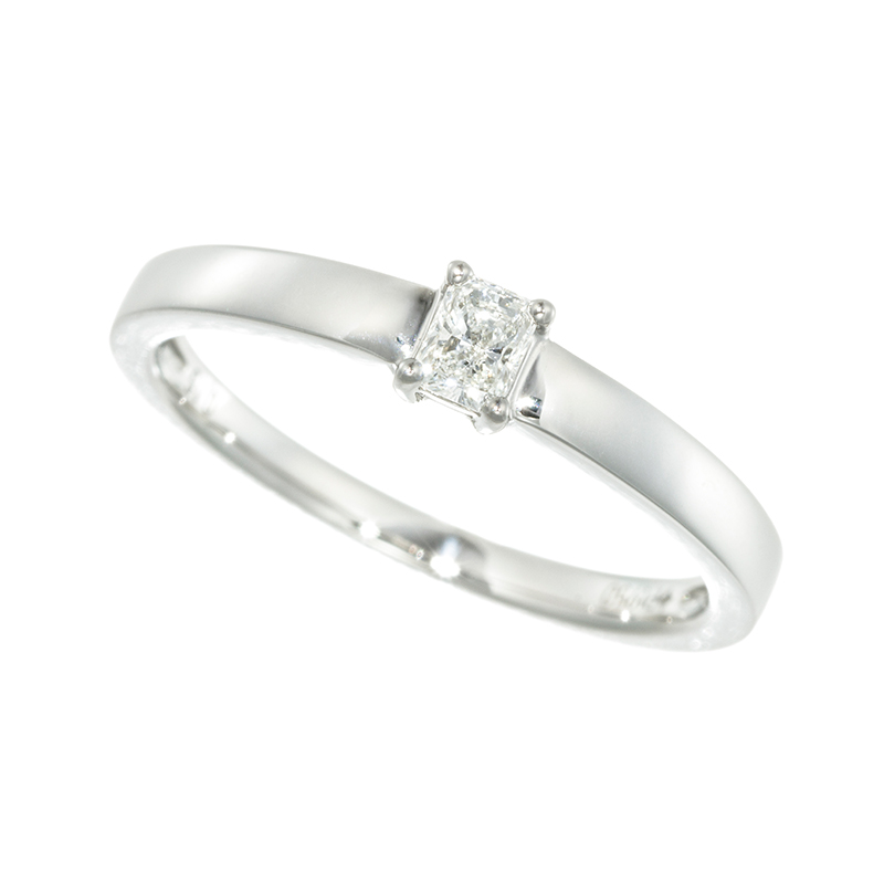 | 輝きとファイアの強さを兼ね備えたラディアントカットのダイヤ。シンプルで上品な仕上がりです。 |