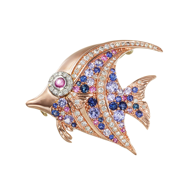 | 【2021年7月ガイド誌掲載】MARIデザイン「トロピカルシーワールド」 太陽の光が差し込んできらめく海の生き物を宝石で表現しました。ファンタジーと夢あふれる色の配色にこだわった可愛らしいお魚のブローチをお楽しみください。 |