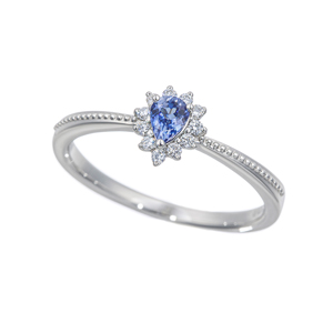 | さまざまなカットをお楽しみいただけるリリーダイヤモンドとダイヤモンドのリング。クリスカット、アッシャーカット、プリンセスカット、ラウンドカットの4種カットをハグラインの地金に配置し、華やかにお仕立ていたしました。それぞれのカットのきらめきをご堪能ください。 |