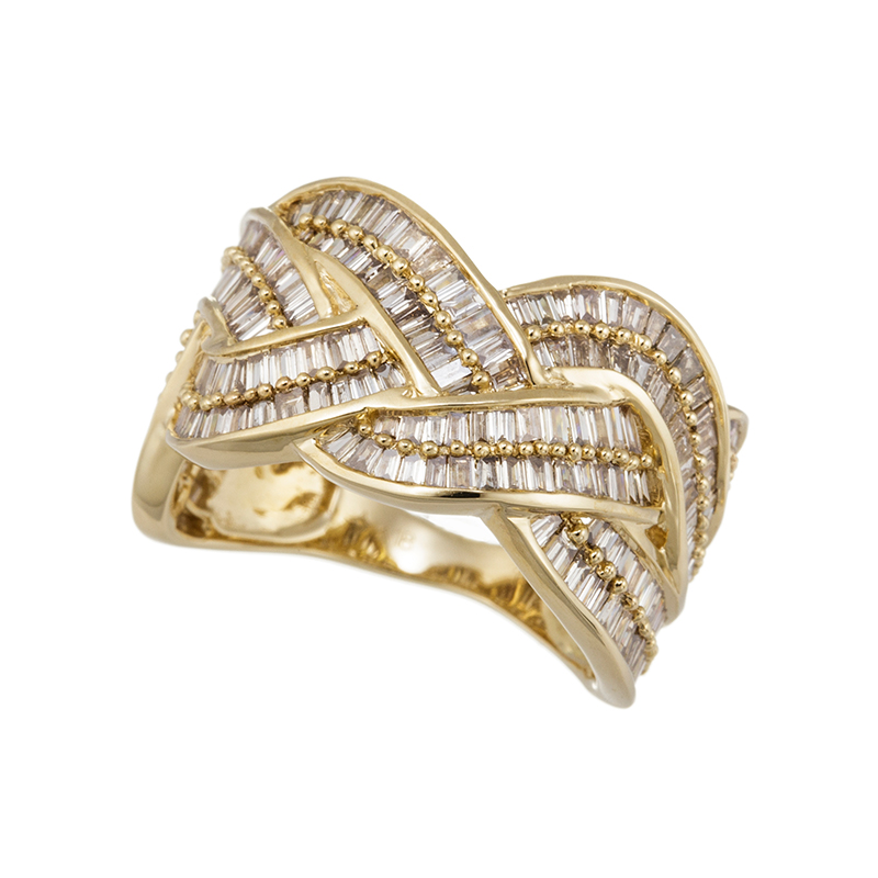 | 三つ編みデザインのリング。イエローゴールドとブラウンダイヤモンドで上品にお仕立ていたしました。しっかりとしたボリューム感があり、男女ともにお楽しみいただけます。 |