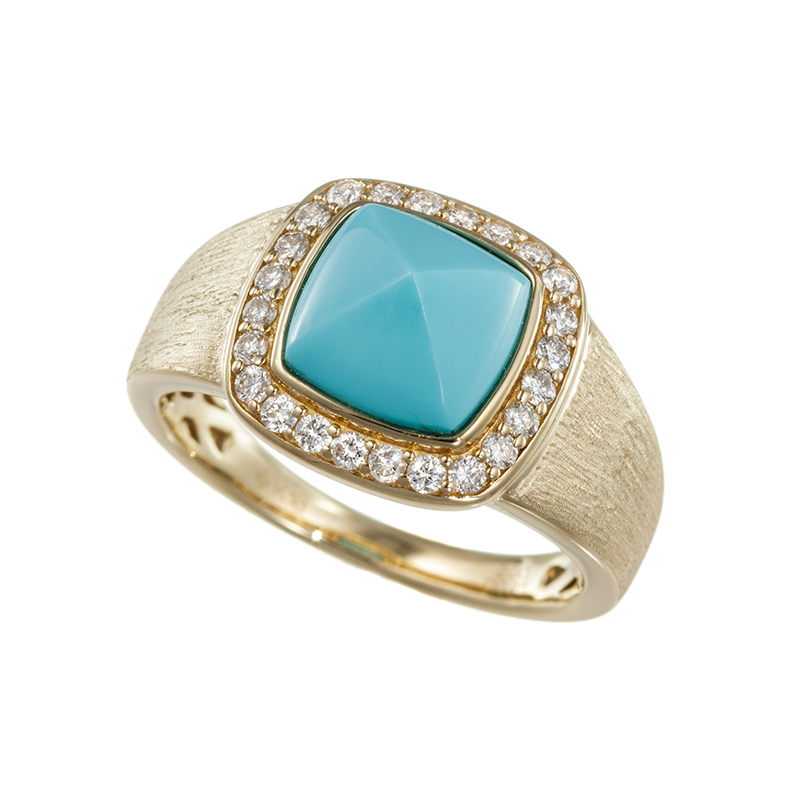 K18YG スリーピングビューティーターコイズ(スタビライズ) ダイヤ リング TQ 約2.00ct D 約0.25ct