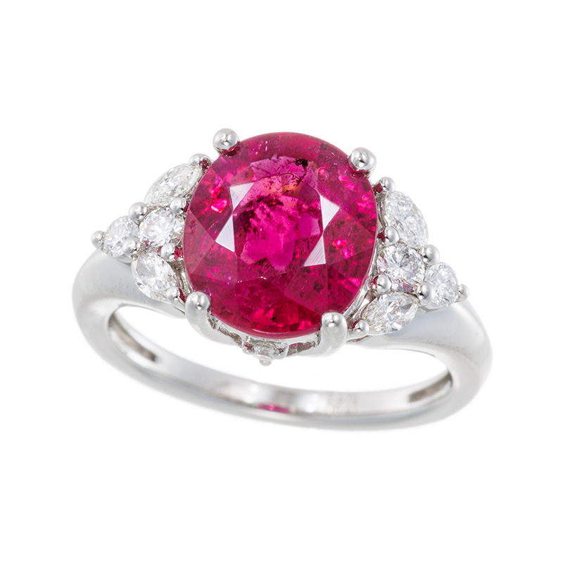 | 【2023年3月ガイド誌掲載】1点もの。色鮮やかなルベライトは、様々なカラーがあるトルマリンの中でも特に人気の石の一つ。インクルージョンが入りやすく透明度の高いものは希少です。約3.0ctのボリュームをお楽しみください。マーキス&ラウンドカットダイヤモンドを程よく使用した上品なデザインで、中石の色味を引き立てます。 |