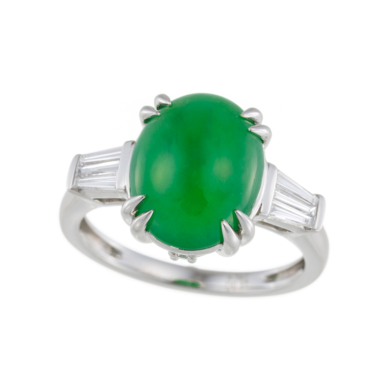 PT950 ヒスイ ダイヤ リング J 4.567ct D 0.37ct