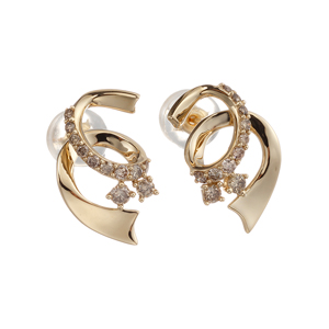 | MARIデザイン 銀河系をコンセプトに銀河の渦巻くイメージをしてデザイン。地金の立体感による光の流れや反射を美しく見せる形状になるようにこだわりました。ハイジュエリーの高級感や遊び心を最大限表現できるように、美しさ重視のピアスにお仕立てしました。 セットアップにおすすめ(ペンダントトップ:5060174) |