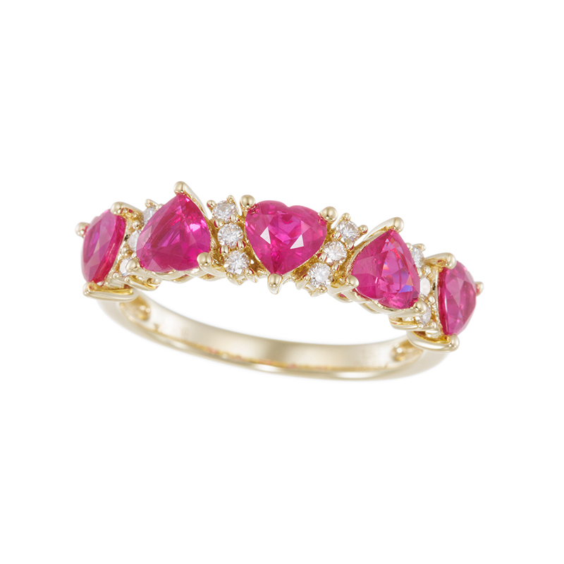 | 【2022年12月ガイド誌掲載商品】 AZUSAデザイン ハートシェイプカットを施したルビーの間に、メレダイヤモンドをあしらった華やかな印象のジュエリーです。 セットアップにおすすめ(ペンダントトップ:5060350) |