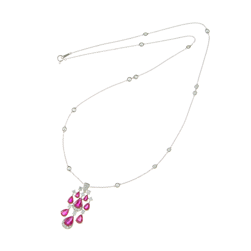 PT950/K18WG ミャンマー産ルビー ダイヤ シャンデリア ネックレス RB 8.226ct D 1.27ct D 1.21ct