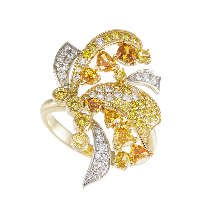 K18YG/PT950 ゴールデンダイヤモンド & ファンシーイエローダイヤ & ダイヤ ファンタジーバタフライ リング D 1.04ct YD 0.72ct D 0.33ct