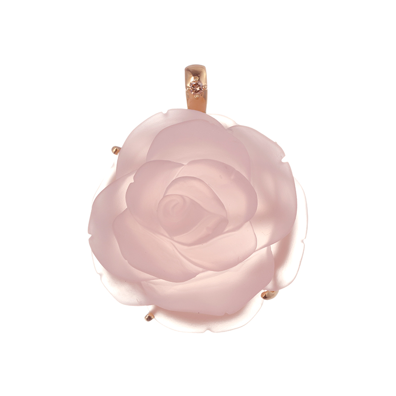 | 【2024年7月ガイド誌掲載】AZUSAデザイン 薔薇の花を象ったローズクォーツをシンプルなペンダントトップにお仕立てしました。優しい色合いが柔らかく、上品な印象を与えてくれます。 |