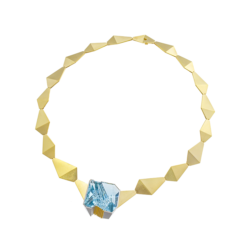 【2023年8月ガイド誌掲載】ベルント・ムンシュタイナーカットアクアマリンを配した、デザインネックレス。特別なシーンを演出する逸品です。 |