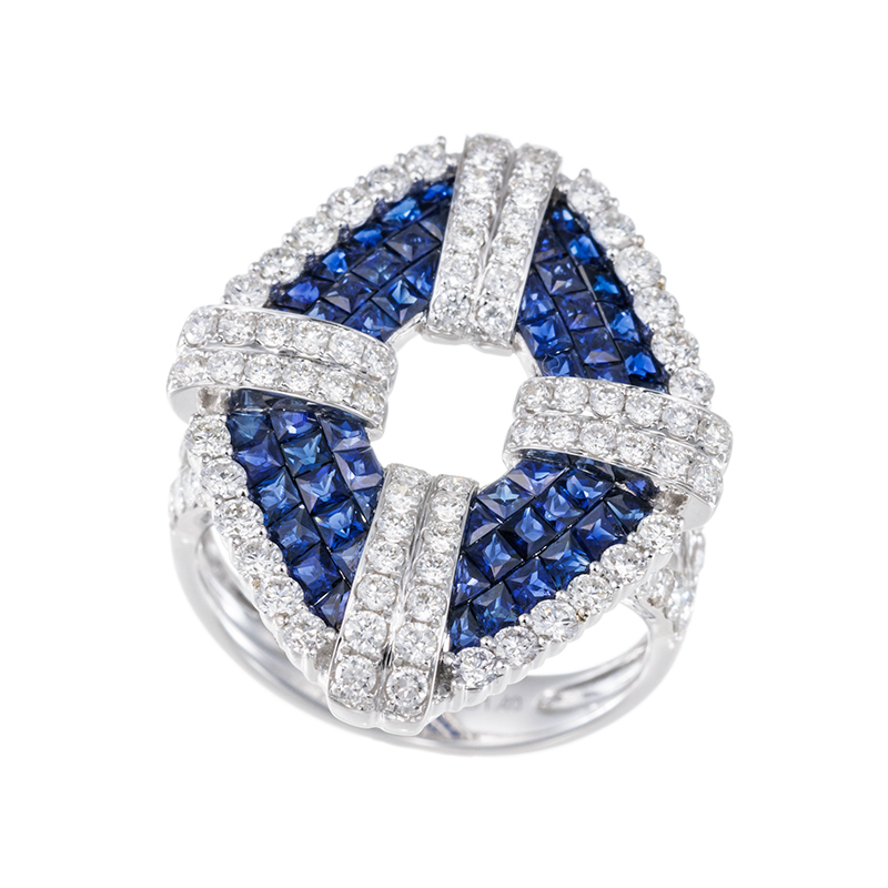 K18WG サファイア ダイヤ(リリーダイヤカット) ミステリーセッティング リング SA 約1.65ct D 約1.40ct(LI)