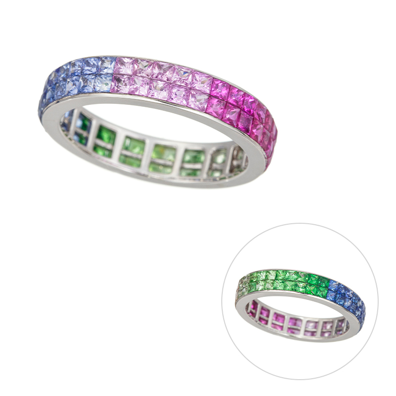 | 【2024年2月ガイド誌掲載】AZUSAデザイン 着ける角度によって印象が変わる「Rainbow」リング。虹のように彩り豊かな心や人生をイメージして、様々な色石を使ったカラフルなフルエタニティリングです。雨上がりの空にかかる美しい虹は、幸運の架け橋・希望・平和の象徴として古くから多くの人たちに親しまれ、すべての可能性も表すと言われています。 同デザイン(S:5067050、YG S:5067048、M:5067049、1列PT S:5067046、M:5067047) |