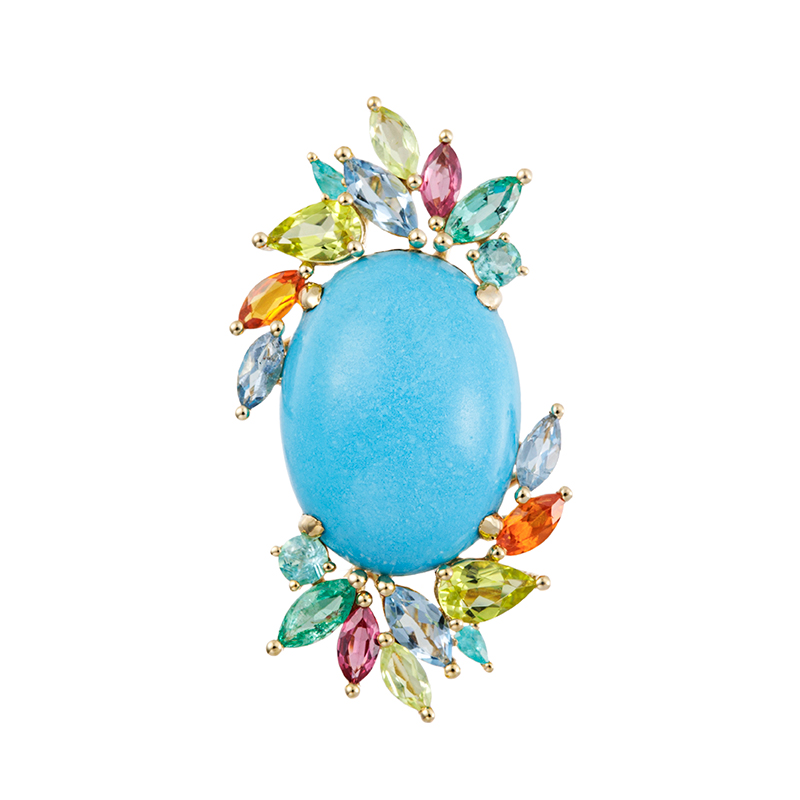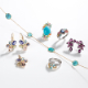 | 【2025年2月ガイド誌掲載】MARIデザイン「ジェムカーニバル」 宝石のカーニバルをテーマにした華やかで楽しいジュエリーコレクション。ビビッドなカラーストーンと柔らかなターコイズの水色が絶妙に調和し、見る人を心躍らせるデザインです。各宝石の輝きがまるでカーニバルのように煌めき、身に着けるたびに華やかな気分を楽しめます。 |