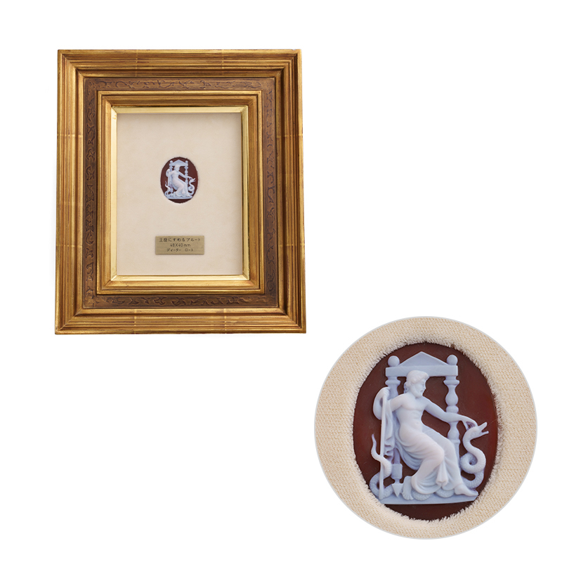 ハンス・ディーター・ロート 手彫り メノウカメオ ルース 「王座にすわるプルート」額装 カメオ 約48×40mm