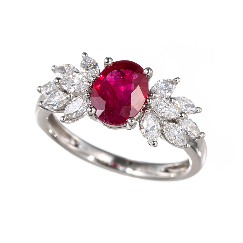 | 【2024年4月ガイド誌掲載】バランスの良いオーバルカットのピジョンブラッドルビーをリングにお仕立ていたしました。天使の羽のような華やかなデザインは中石の美しさを豪華かつエレガントに引き立てます。華やかな1本をお探しの方におすすめです。 |
