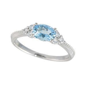 | 【2024年8月ガイド誌掲載】パライバトルマリンとアウイナイトを交互にセッティングした一文字リング。間にダイヤモンドをセッティングし、煌めきをプラスした爽やかなデザインです。 |