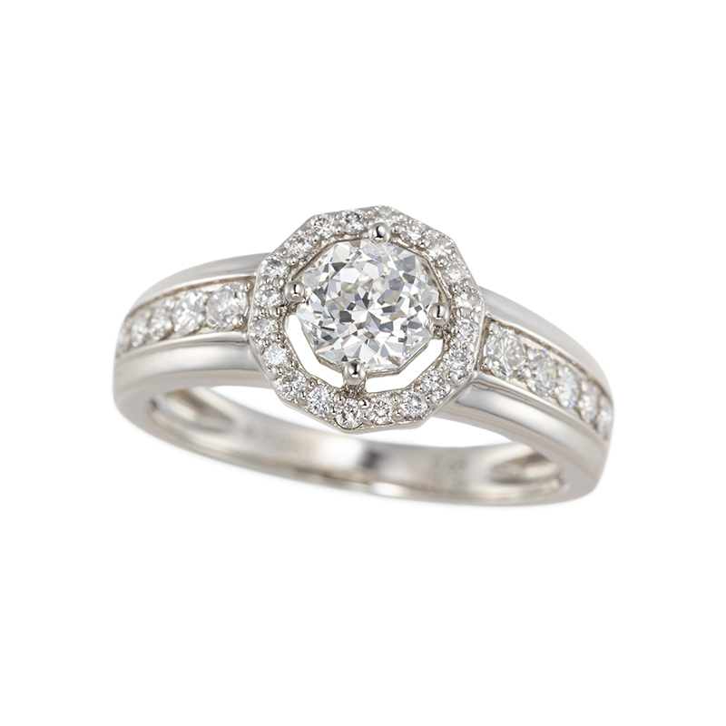 | 【2024年4月ガイド誌掲載】AZUSAデザイン 1点もの。「Decagon」のは十角形という意味。十角相をもつこの稀有なダイヤモンドは、10の直線を軸とした71のファセットによって形成されています。指先に夜空の流れ星がたどりついたような力強い煌めきが魅力のデザインです。 |