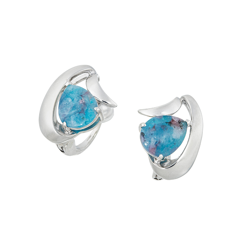 パラジウムシルバー950 ブラジル産パライバトルマリン(母岩付き) リズム フェザータッチイヤリング PRT 約2.00ct